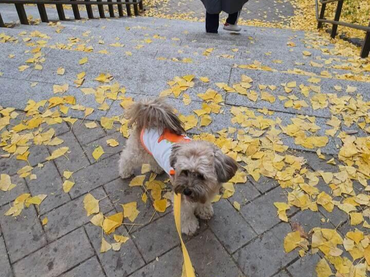 단풍 구경하면서 이리저리 걸어다니 보니 어느새 해가 뉘였뉘였 지고있었다. 그래서 이때 찍은 토리 사진은 약간 푸르스름하다. 요즘 집에서 잘 안 웃어서 걱정이었는데, 저렇게 하루 종일 해삐하게 웃고 있다니 진작에 데리고 나왔어야 하는구나!