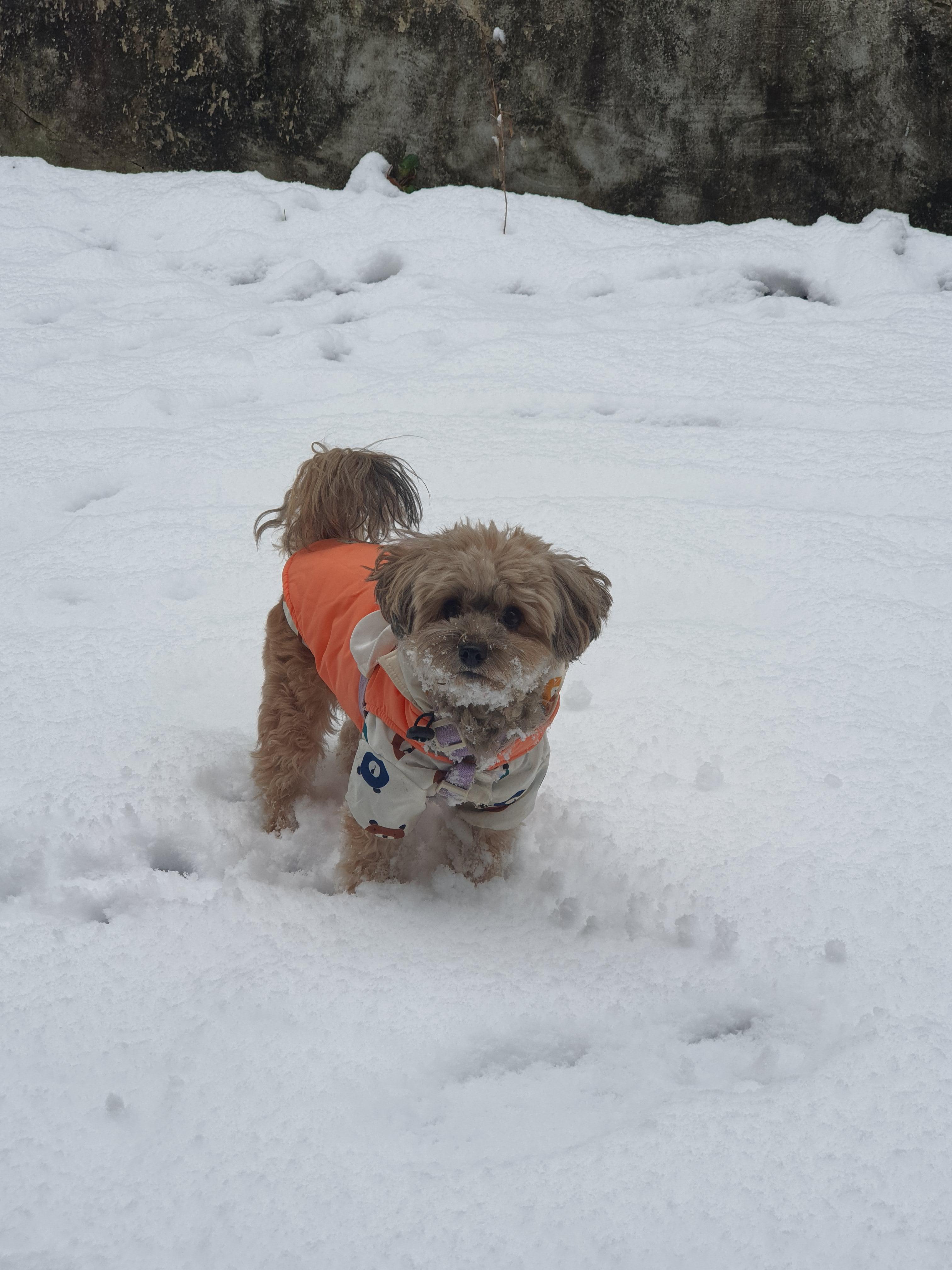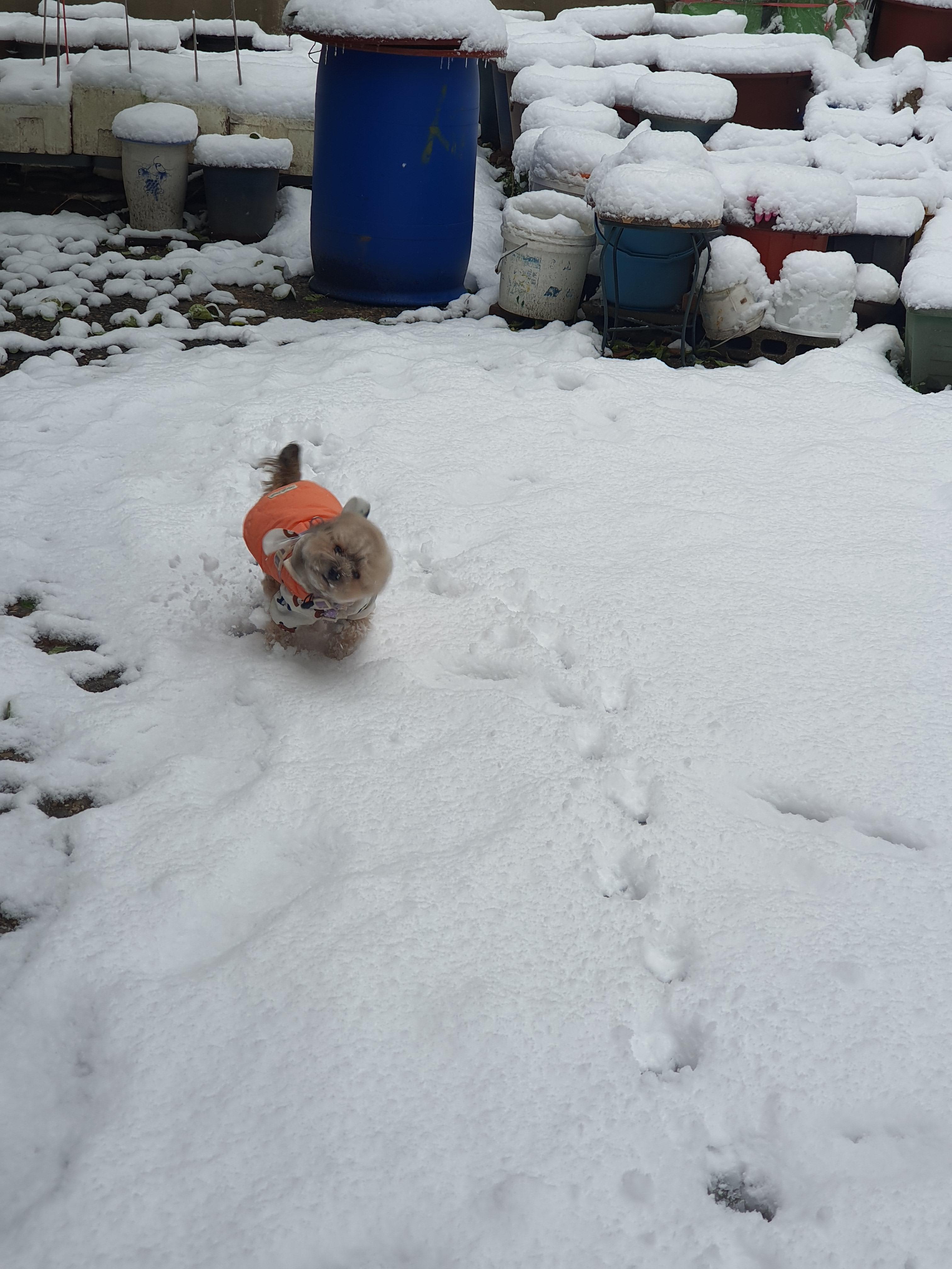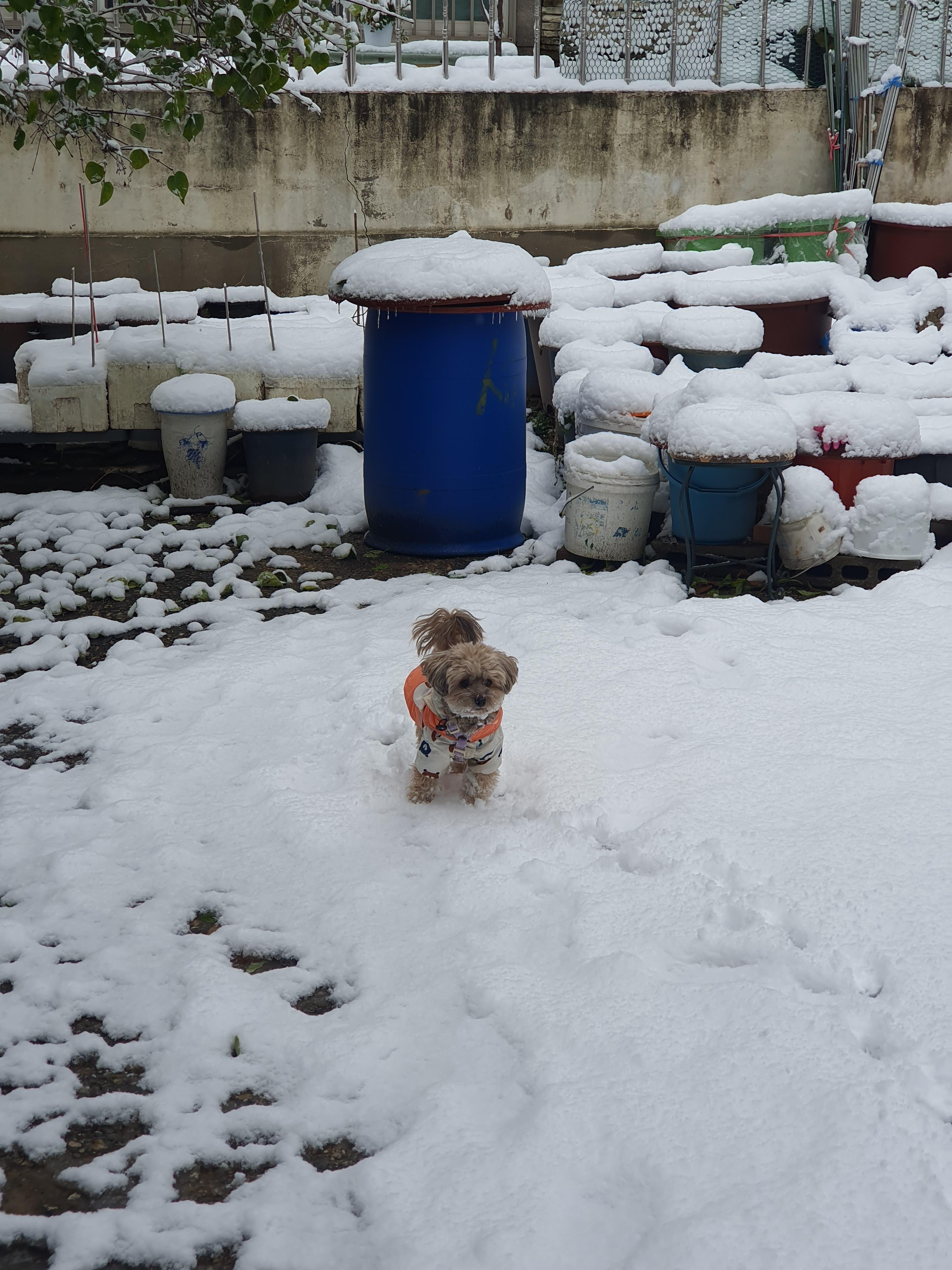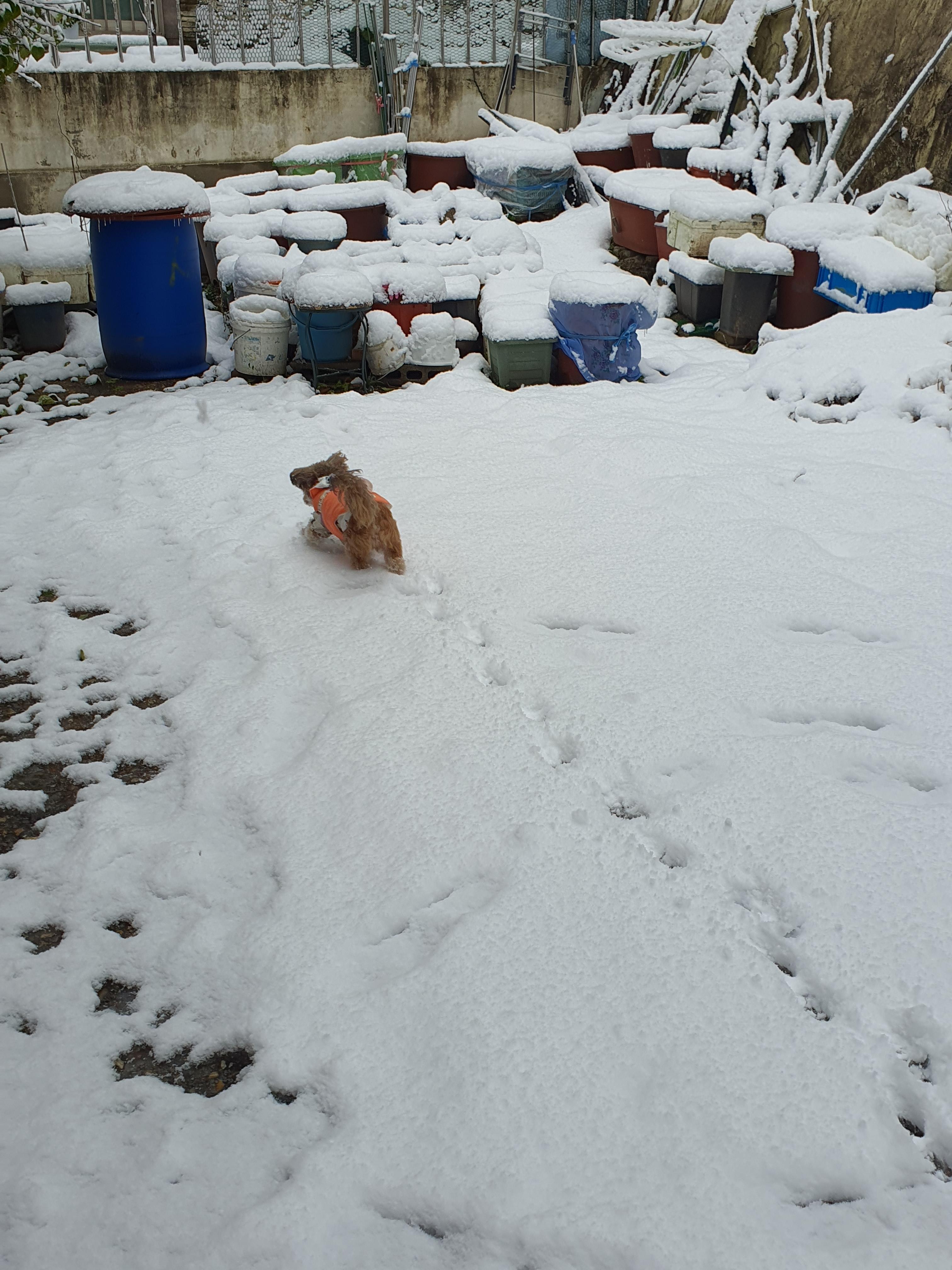 무엇보다 눈을 배경으로 토리를 찍으면 더 귀여운 느낌이라서, 안 나갈 수 없다