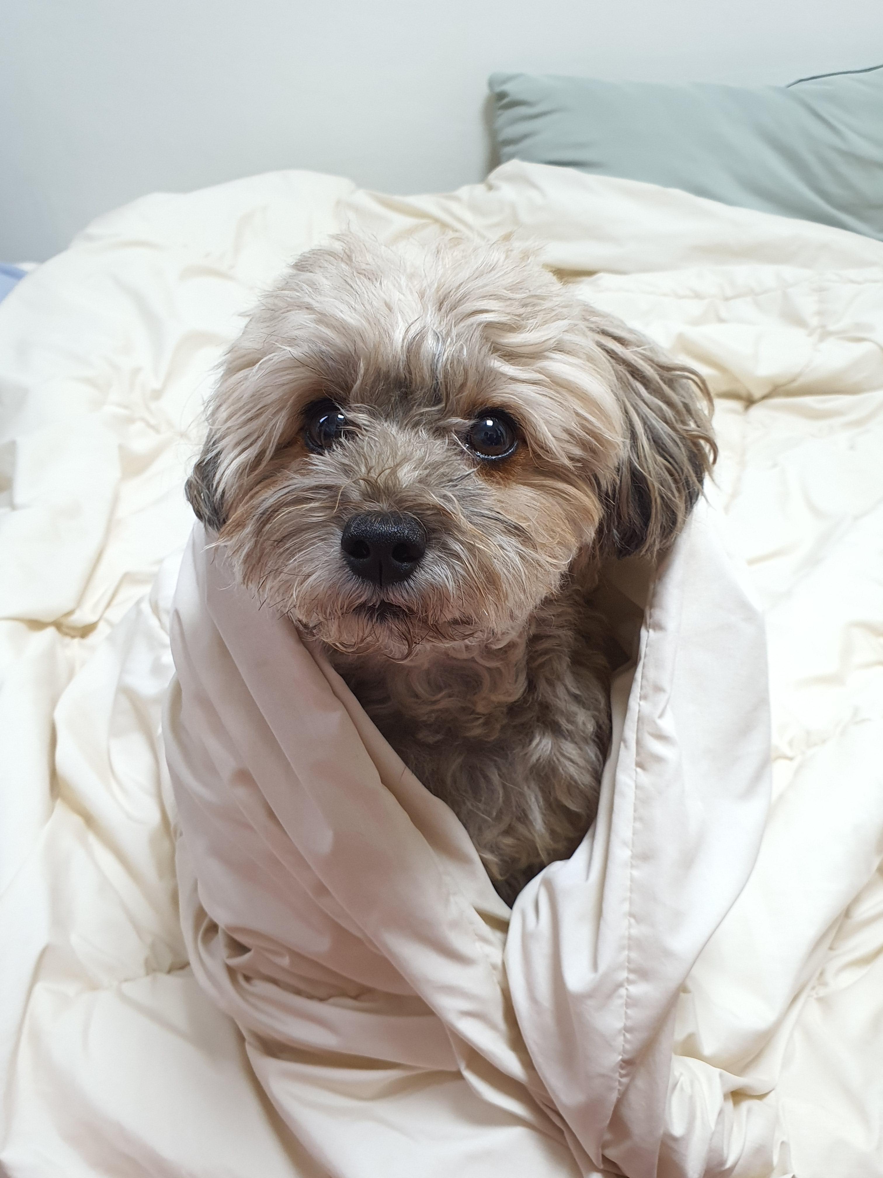 토리 이불로 돌돌 감아주고 (근데 답답해서 바로 탈출)